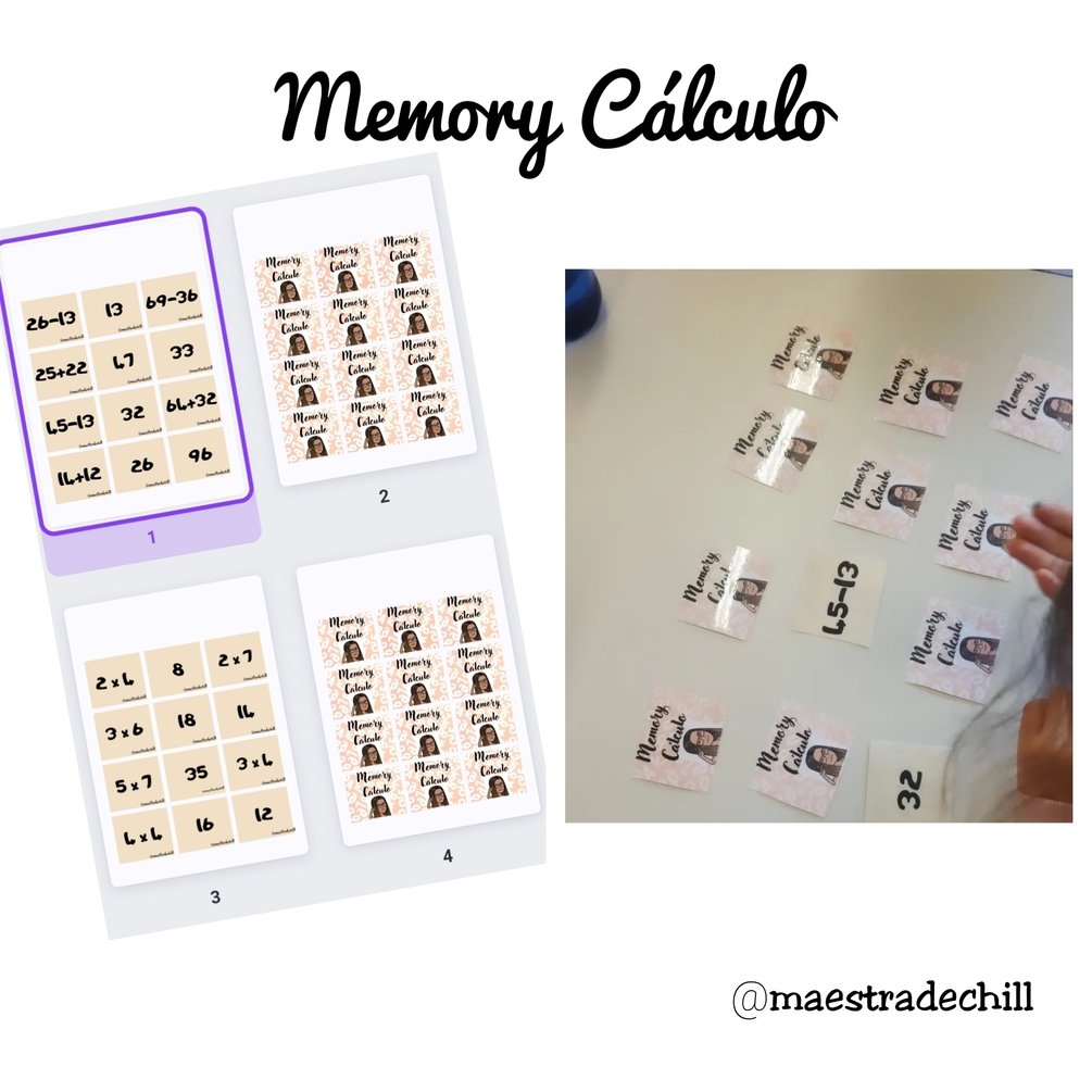 Un memory de Cálculo con sumas y restas de dos cifras y multiplicaciones de una cifra.